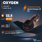 شارژر فندکی AC08 22.5W اکسیژن با بدنه مقاوم و طراحی جمعوجور ساخته شده است. ظاهر مدرن و کیفیت ساخت بالا، این شارژر را برای استفاده روزمره در خودرو ایدهآل میکند.